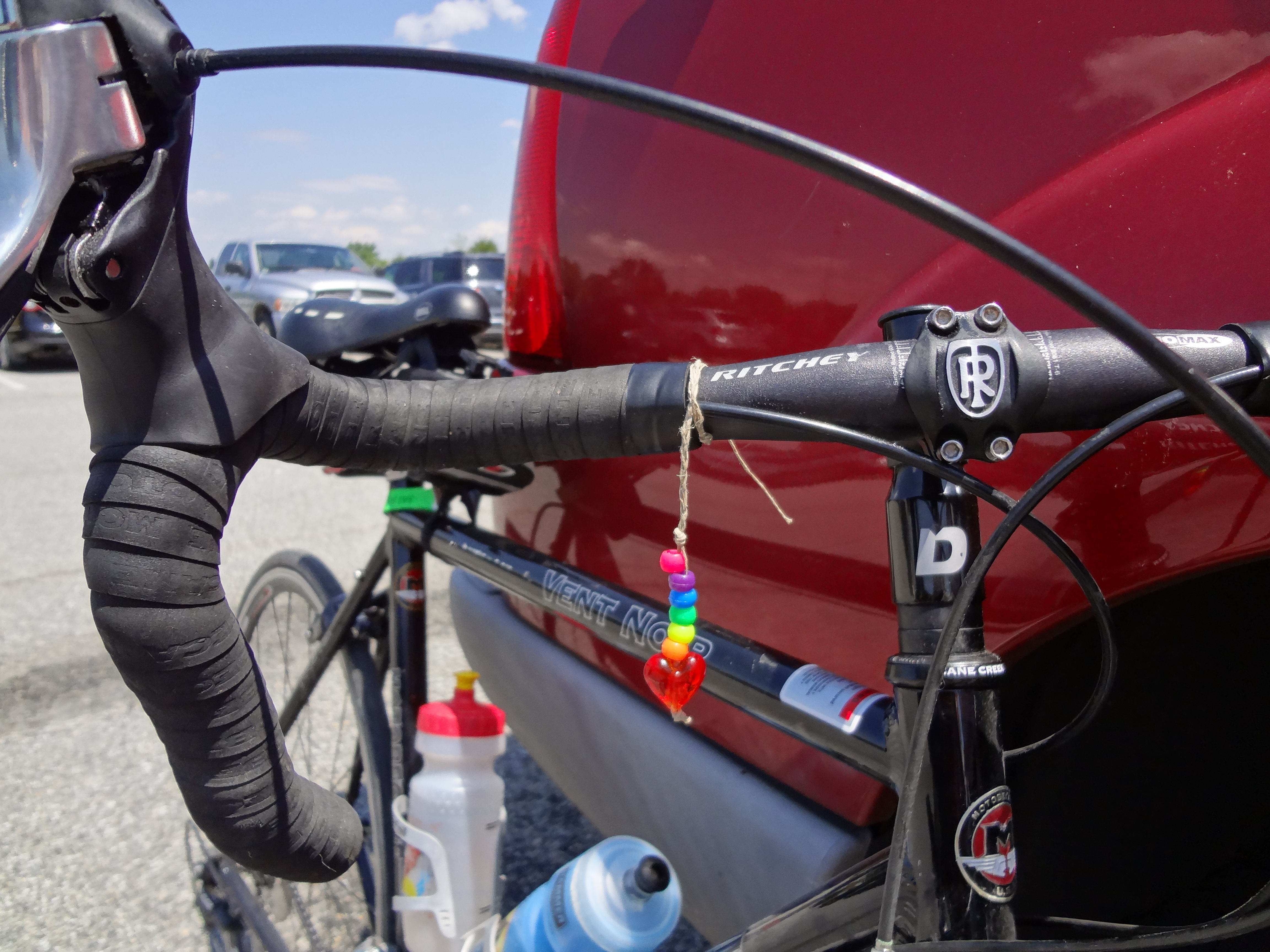 Putting the front wheel on my bike before the ride. This is notable only if you want to see what my truck looks like, or you really wanted to see a 52 year old in bike shorts.
