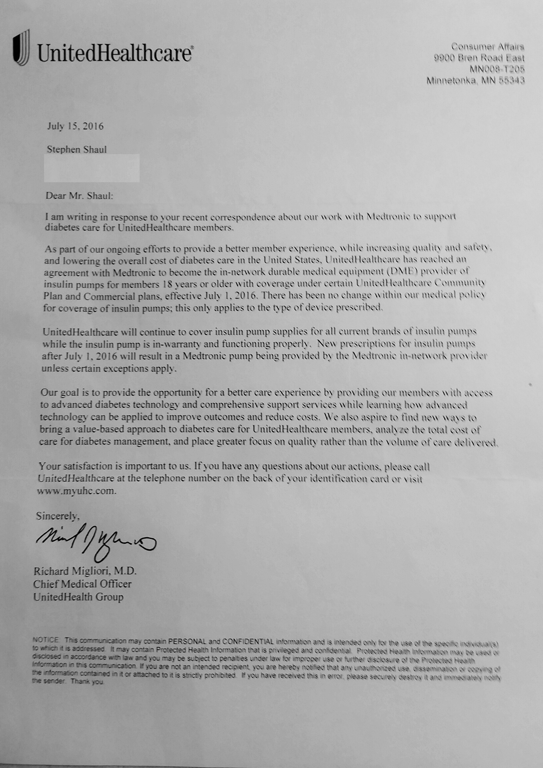 We’re not asking for anything more than what we deserve. UHC patients are not asking for anything less than what they had prior to July 1. Because it’s what they deserve. It’s what they’re paying for. And, oh by the way, it wouldn’t cost UHC one extra dime to allow the same choice that existed less than a month ago.