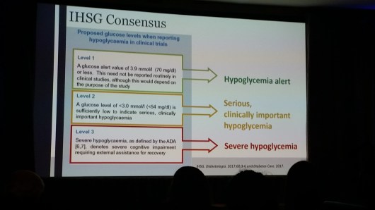 One of the topics that kept coming up concerned language: do we distinguish a difference between a mild hypoglycemic event (like 70 mg/dL) and a more serious one (like below 54 mg/dL)? For the record, it’s not likely that the FDA would allow the word “serious” to be used, because that word carries a very distinct definition at the FDA.