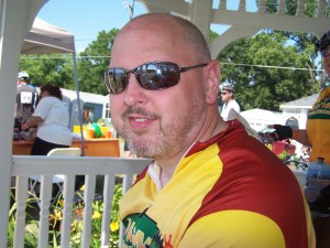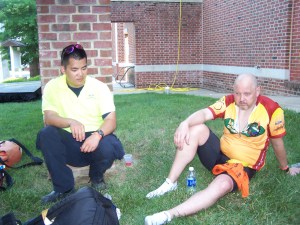 The next time someone with a camera caught me, at the mile 80 rest stop. If you look closely, you can see the Chesapeake Bay in the reflection off of my sunglasses. Obviously, I had no idea of the hell that was to come.